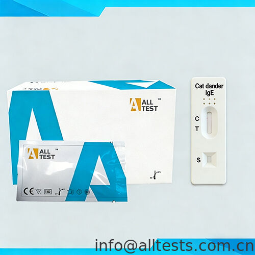 The Cat Dander Allergy Rapid Test (Whole Blood/Serum/Plasma) is a lateral flow chromatographic immunoassay for the qualitative detection of specific lgE antibodies to cat dander allergens in whole blood, serum or plasma to aid in the diagnosis of cat dander allergy.