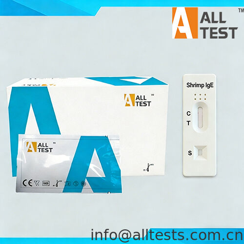 The Shrimp Allergy Rapid Test (Whole Blood/Serum/Plasma) is a lateral flow chromatographic immunoassay for the qualitative detection of specific lgE antibodies to Shrimp Allergens in whole blood, serum or plasma to aid in the diagnosis of Shrimp allergy.